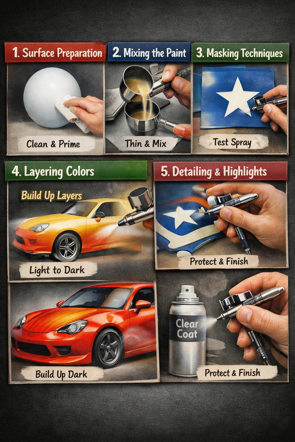 Berikut adalah langkah-langkah utama untuk menyelesaikan airbrush lukisan: