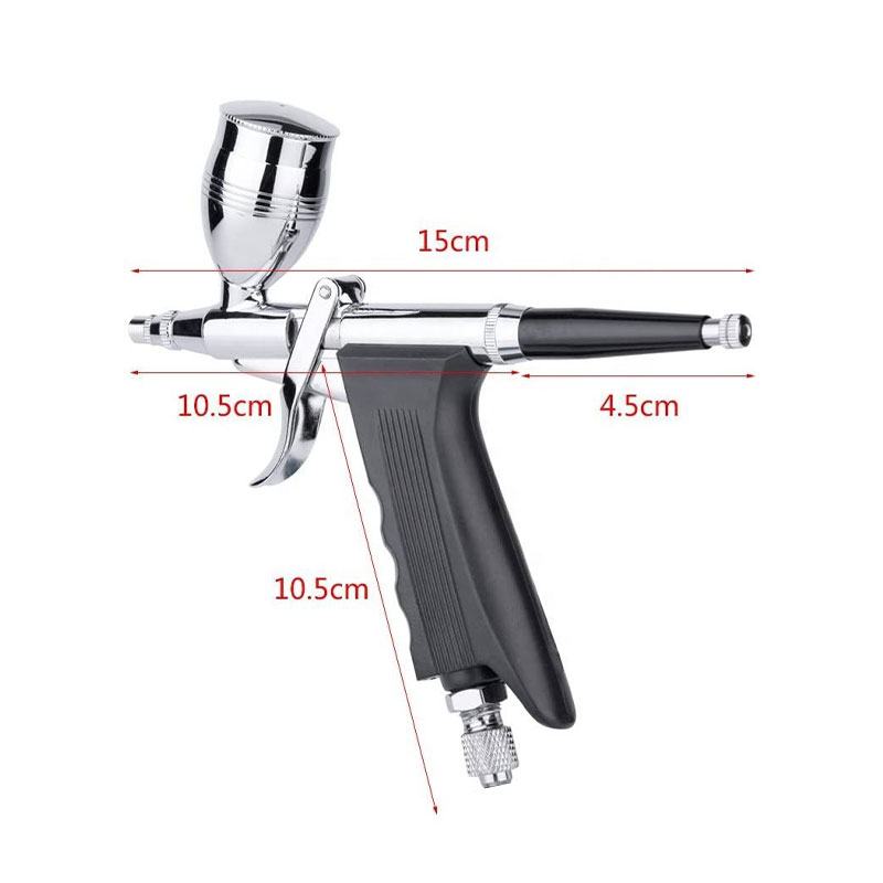 Desain pegangan pistol juga memungkinkannya untuk beradaptasi dengan berbagai skenario penggunaan yang berbeda. Apakah itu penyemprotan, pemotretan, atau tugas lain yang memerlukan memegang perangkat, pegangan pistol dapat memberikan cengkeraman yang stabil dan andal. Selain itu, desain pegangan pistol juga memungkinkan pegangan pistol cat airbrush dual-action, 2cc, 5cc, dan opsi 13cc dengan 3 cangkir berbeda untuk mempertahankan kinerja operasi yang baik di ruang sempit atau ketika gerakan cepat diperlukan.